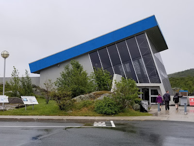 By the time the outdoor performance had concluded it was raining pretty hard. We headed over to the nearby Johnson Geo Centre, which features fascinating exhibits describing the unique geology of Newfoundland. Reading about all the unique rock formations, and learning that the rock we had been hiking along for the past couple of weeks is some of the oldest exposed rock on the planet made us wish we had visited this place before our hike so we could have better appreciated what we were seeing. The centre also provided interesting displays on Newfoundland's contributions to space exploration and NASA, the history of the Titanic and the events that led to its sinking, and the modern oil and gas industry. It was a very interesting place to visit, and we thoroughly enjoyed it.